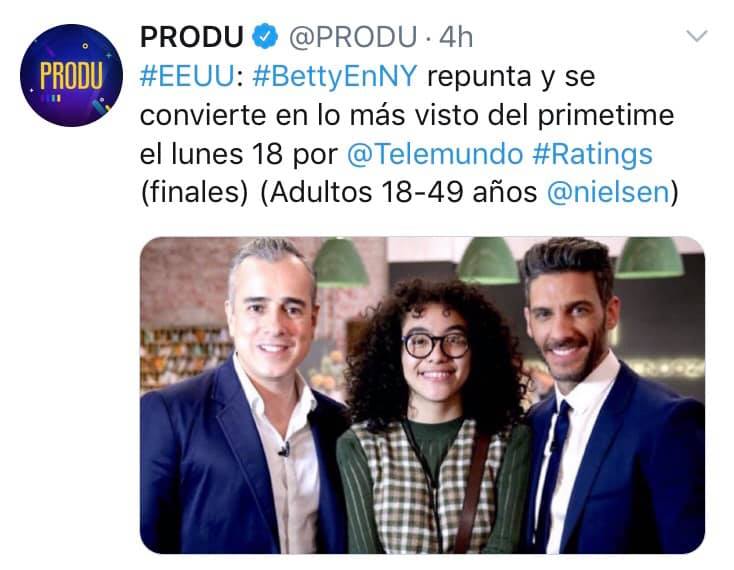 Amigos no se pierdan Betty en New York por Telemundo Have a great night... un abrazo de su amigo Jaime Aymerich
